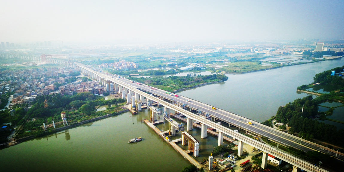 东莞正着力参与粤港澳大湾区建设发展,加强国铁、城际轨道项目前期研究,莞惠城轨建成通车,赣深客专东莞段开工建设。虎门高铁站、东莞西站、东莞火车站等TOD项目加快推进。从莞高速、粤晖大桥、红海大桥等项目完工通车。图为位于洪梅镇的在建中的莞惠城轨。