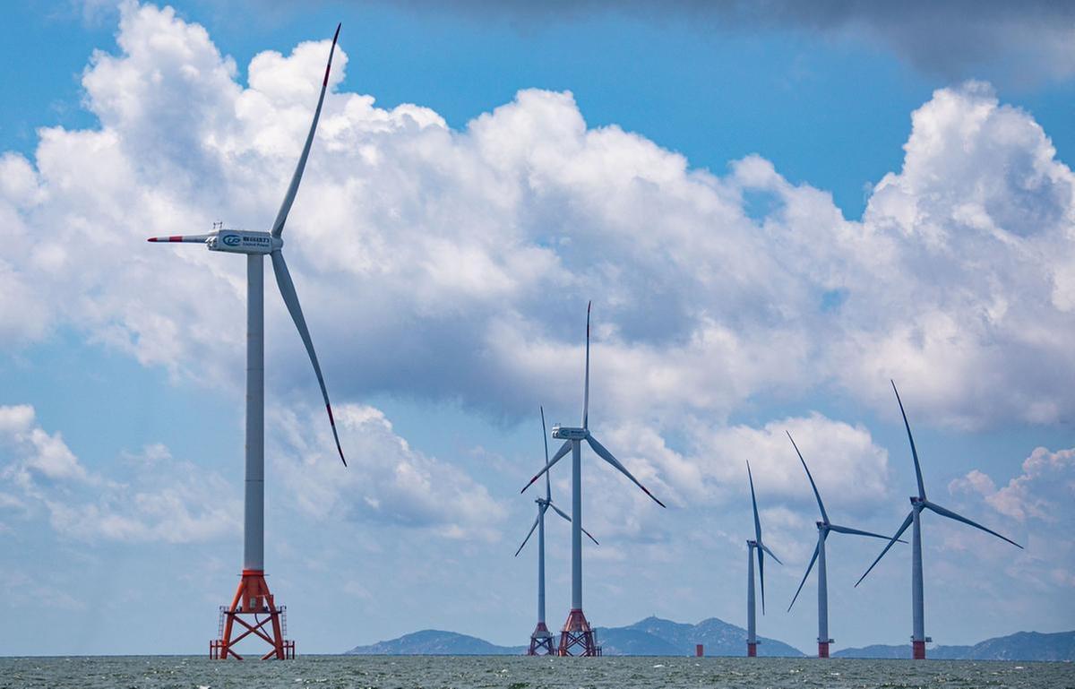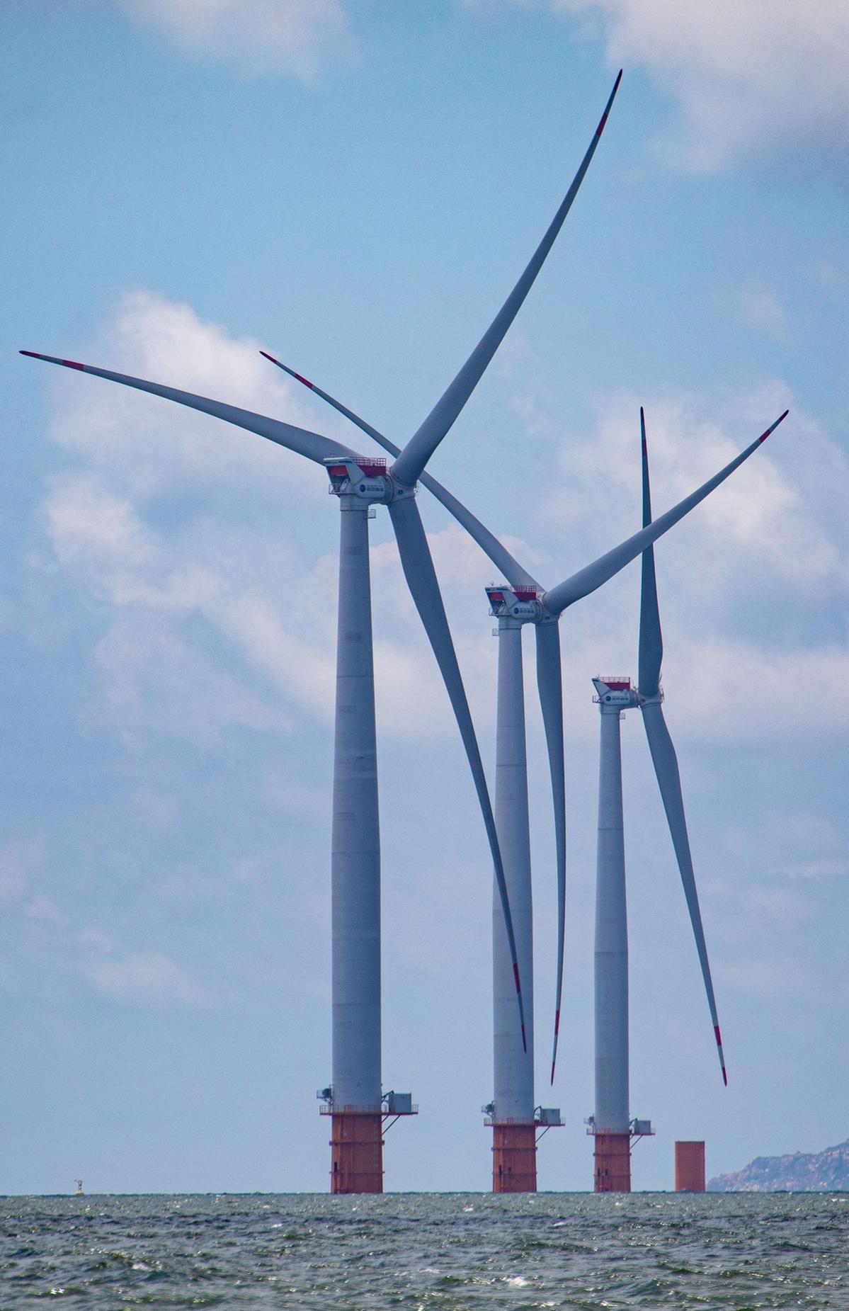 如今,桂山海上风电场一期工程120兆瓦风机已经全部并网发电;二期工程13台风机单桩基础已全部完工,首台风机已并网发电。目前,海上风电项目进入抢装期,南方海上风电联合开发有限公司正在积极协调工程船只,加快完成二期工程剩余风机的吊装作业。
