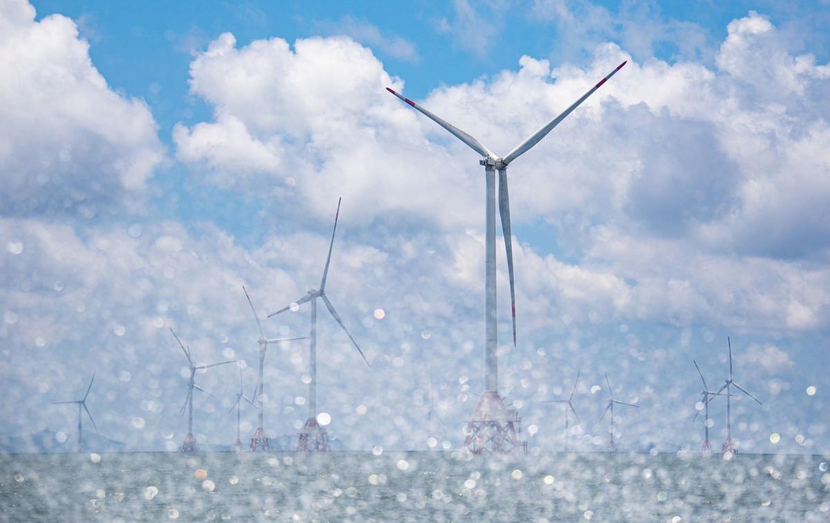 除了桩基差异外,海上风机的发电功率也有不同:一期工程采用3兆瓦的小风机,桨叶转一圈能发大约3度电;二期工程采用6兆瓦大风机,桨叶转一圈能发7-8度电。