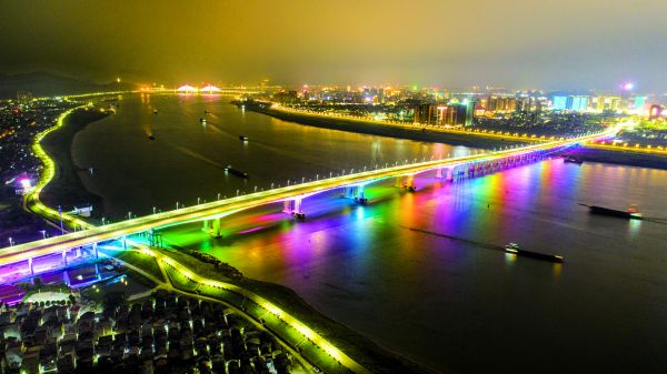 虹桥架南北,肇庆夜景添新景,肇庆大桥完成泛光工程。