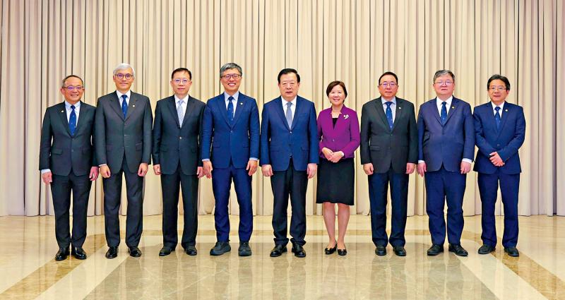 图:3月12日下午,中央港澳工作办公室主任、国务院港澳事务办公室主任夏宝龙在北京会见香港科技大学校董会主席沈向洋、校长叶玉如一行。\国务院港澳办图片